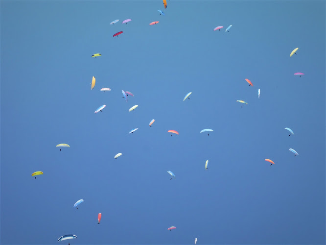 Po odbudowaniu wysokośći utworzyła się kilkuosobowa grupa lecącą po prostej nad płaskim w kierunku drugiego punktu zwrotnego. Noszenia nie przekraczały 2 m/s. W tej grupie leciał Spike, Chrząszczu i Jacek Górski. W pewnym momencie dogoniliśmy jakieś szaro-białe Enzo lecące samotnie wysoko - jak się nie lata w zawodach to się nie rozpoznaje kolegów ...